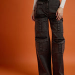 Black Washed Cargo Straight Jeans , in Denim fabric, Unlined, Full Length, Straight Fit, Button Closure, Straight Hemline and features 2 button Detail At Waistband