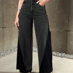 Black Washed ColorBlock Wide Leg Jeans, in Denim fabric, Unlined, Full length, Straight Fit, Zipper Closure, Straight Hemline and features Color Block At Side Seam