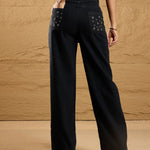 Women Black Washed Eyelet Detail Straight Fit Jeans