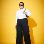 Black Washed Tencel Pocket Cargo Pants, in Tencel fabric, Unlined, Full Length, Comfort Fit, Button Closure, Straight Hemline and features Slit Detail At Front
