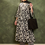 Women Black & White Floral Gathered Kurta Set with Dupatta