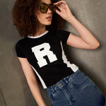 Black & White R-Print Fitted T-Shirt, in Cotton Jersey fabric, Unlined, Crop Length, Slim Fit, NA, Straight Hemline and features Print At Front