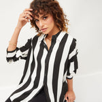 Women Black & White Striped Oversize Shirt