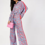 Blue Abstract Print Oversize Shirt With Pants, in Rayon Twill fabric, Unlined, Regular Length, Comfort Fit, Button Closure, Straight Hemline and features Tassel Detail At Side