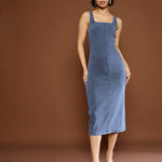 Women Blue Acid Wash Strappy Midi Dress
