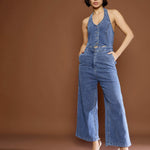 Women Blue Blast Denim Halter Neck Jumpsuit