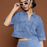 Women Blue Blast Denim Patch Pocket Crop Top