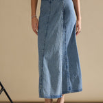 Blue Blast Side Pocket Midi Wrap Skirt, in Denim fabric, Unlined, Midi Length, Comfort Fit, Belt Clouser, Straight Hemline and features Wrap Round Detail At Front