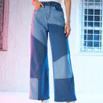 Women Blue Colour Block Straight Fit Jeans