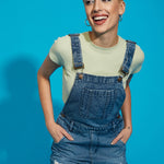 Women Blue Denim Distress Dungaree
