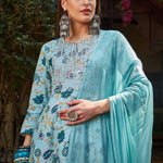 Women Blue Floral Anarkali Kurta With Pencil Pants & Dupatta