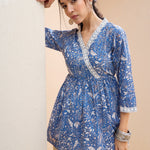 Women Blue Floral Cambric Wrap Peplum Kurti