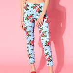 Blue Floral Leggings, in Poly Knit fabric, Unlined, Ankle Length, Skinny Fit, Elasticated Waist Band, Straight Hemline and features 2 Patch Pockets At Back