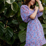 Women Blue Floral Off Shoulder Mini Dress