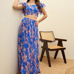 Women Blue Floral Strappy Crop Top With Maxi Skirt