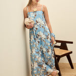 Women Blue Floral Strappy Loose Fit Maxi Dress