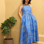Women Blue Floral Strappy Midi Dress