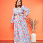 Women Blue Floral Waist Cut-Out Maxi Dress