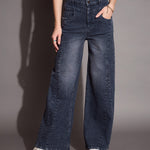 Blue Front Seam Straight Fit Jeans , in Denim fabric, Unlined, Full Length, Straight Fit, Button Closure, Straight Hemline and features Front Seam Detail