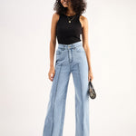 Blue High Waist Front Dart Jeans, in Denim fabric, Unlined, Full Length, Straight Fit , Button Closure, Straight Hemline and features Dart Detail At Front