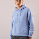 Women Blue Hooded Faux Fur Sweatshirt