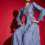 Women Blue Mughal Print Waist Cut-Out Maxi Dress