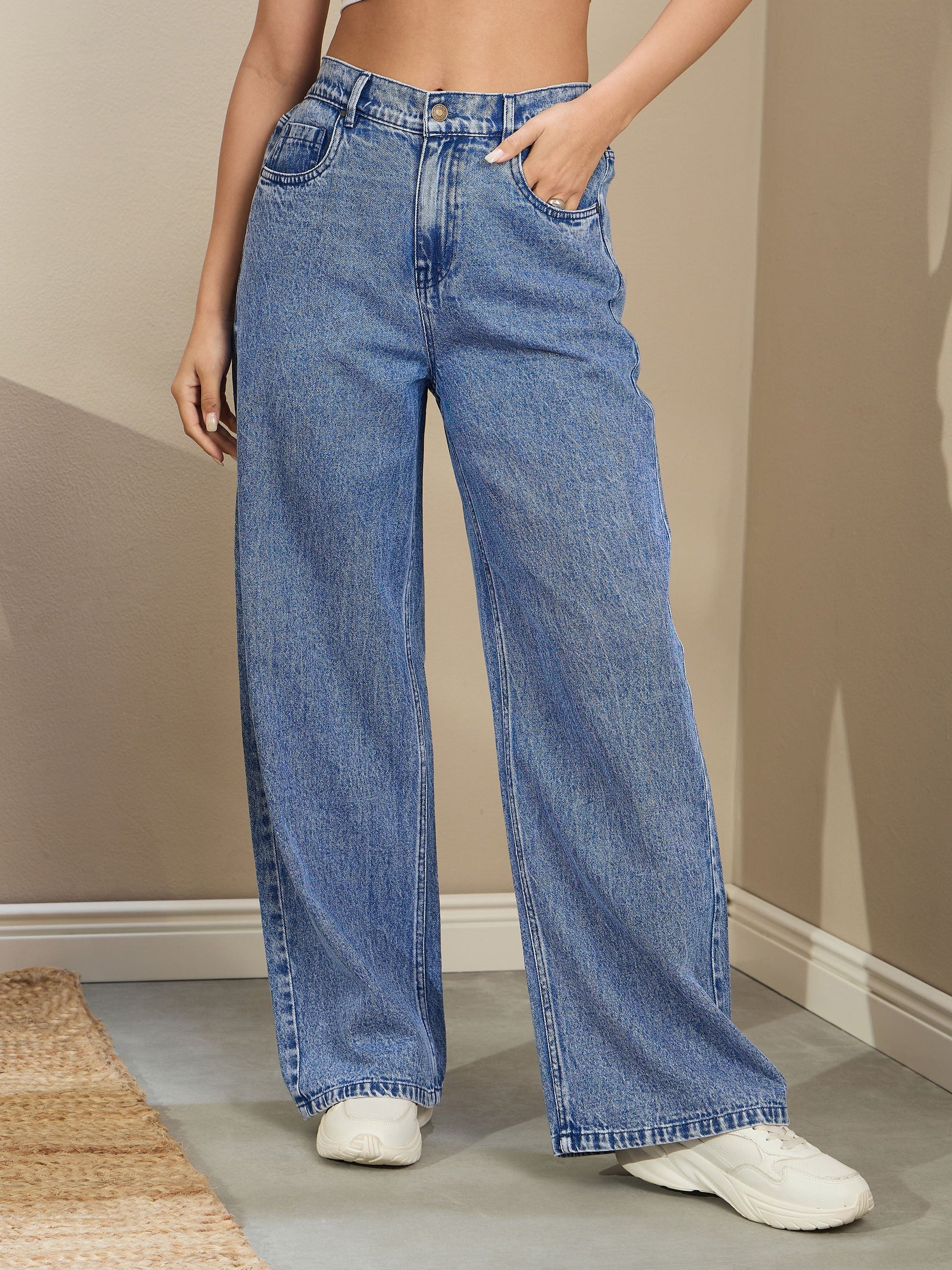 Women Blue Wash High Waist Straight Fit Jeans