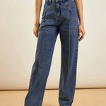 Blue Washed Front Darted Straight Fit Jeans , in Denim fabric, Unlined, Full Length, Straight Fit, Button Closure, Straight Hemline and features Dart At Front