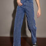 Women Blue Washed Straight Fit Jeans