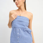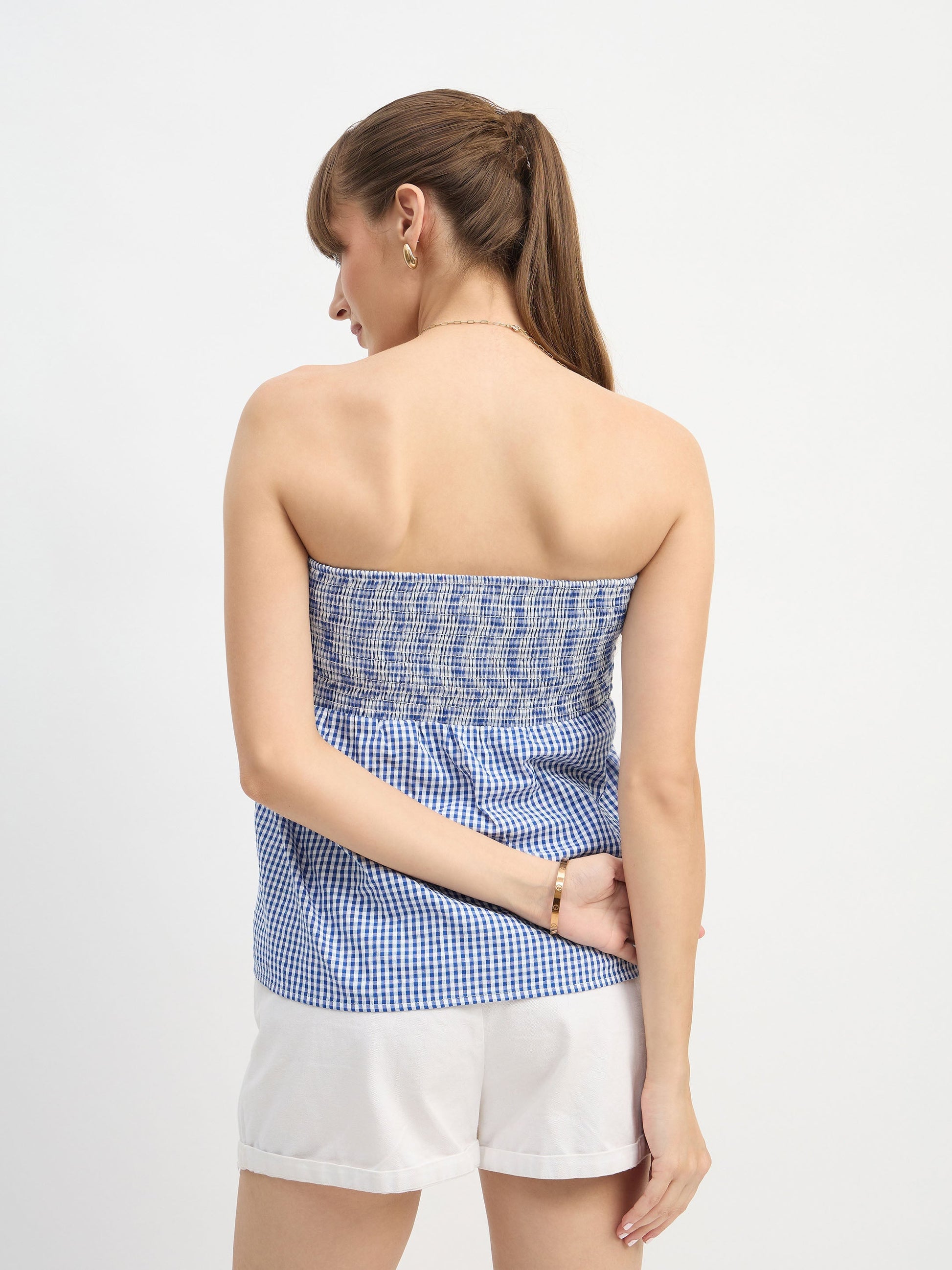 Blue & White Check Smoked Back Tube Top, in Cotton Poplin fabric, Unlined, Regular Length, Regular Fit, Button Closure, Straight Hemline and features Gather At Chest