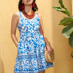 Women Blue & White Strappy Short Flared Dress