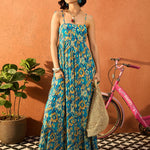 Women Blue & Yellow Ikat Print Strappy Tie-up Maxi Dress