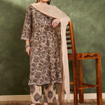 Women Brown & Beige Floral Yoke Kurta Set with Dupatta
