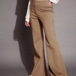 Brown Bootcut Flared High-Rise Trousers, in Roma fabric, Unlined, Full Length, Bell Bottom, Slip On, Straight Hemline and features Seam Detail at Front
