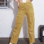 Brown Box Pocket Cargo Jeans, in Denim fabric, Unlined, Full Length, Straight Fit, Button Closure, Straight Hemline and features Slit On Knee