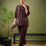 Women Brown Embroidered Pocket Shirt With Palazzos
