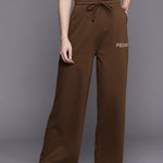 Brown FEELING Track Pants, in Terry fabric, Unlined, Regular Length, Comfort Fit, Drawstring Closure, Straight Hemline and features Print At Leg