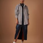 Brown Flannel Check Oversized Shirt, in Yarn Dyed Check fabric, Unlined, Regular Length , Comfort Fit, Button Closure, Curved Hemline and features Plastic Button Detail