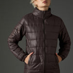 Women Brown High Neck Horizontal Quilt Puffer Jacket