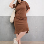 Brown Polo Neck Side Slit Midi Dress, in Cotton Jersey fabric, Unlined, Midi Length, Comfort Fit, Button Closure, Straight Hemline and features Slit Detail At Side