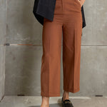 Brown Twill Wide Leg Pants , in Cotton Twill fabric, Unlined, Full Length, Comfort Fit, Button Closure, Straight Hemline and features Roll-Up Detail At Bottom