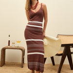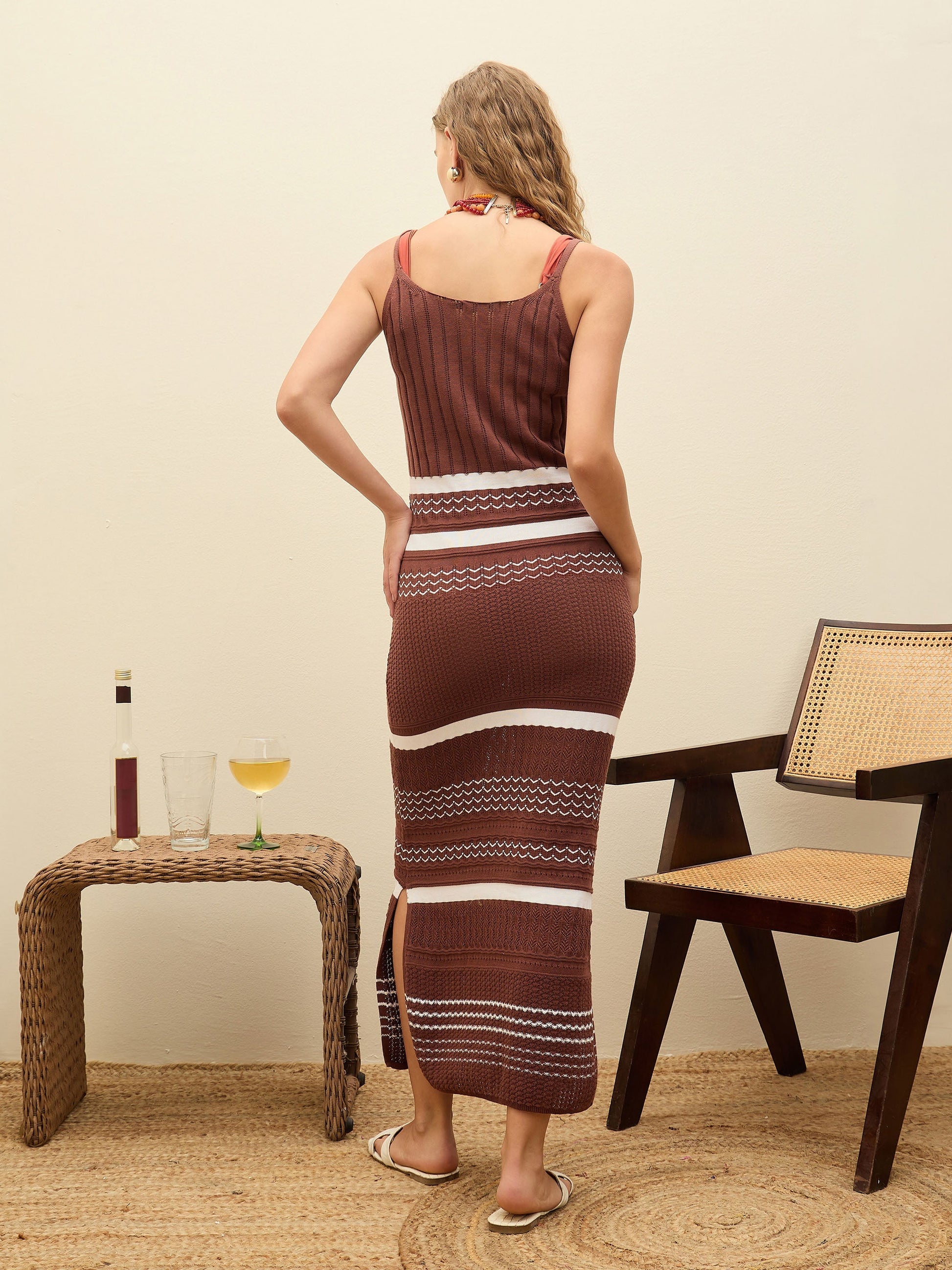 Women Brown & White Crochet Variegated Stripes Strappy Beach Maxi