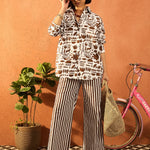 Women Brown & White Quirky Shirt With Straight Pants