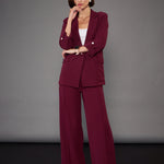 Women Burgundy Front Button Blazer With Palazzo Pants