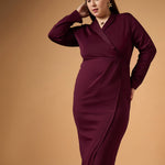 Burgundy Full Sleeves Midi Dress, in Scuba fabric, Poly Knit, Midi Length, Comfort Fit , Zipper Closure, Straight Hemline and features Pleats Detail At Waist