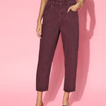 Women Burgundy High Waist Mom Fit Jeans