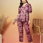 Wine Self Woven & Tie Dye Printed Kantha Cotton Co-Ord Set