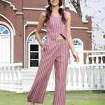 Pink Striped Printed Cotton Blend Co-Ord Set