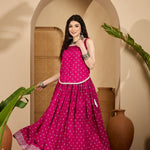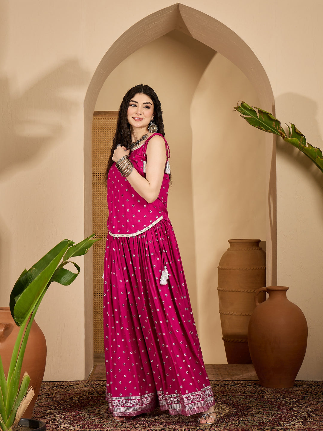 Pink Ethnic Printed Rayon Vest Top With Skirt
