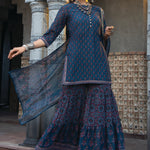 Teal Georgette Festive Floral Print Straight Tunic-Sharara Dupatta